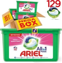Ariel All In 1 Wasmiddel Pods + Lenor Unstoppables – 3 X 43 Wasbeurten – Voordeelverpakking